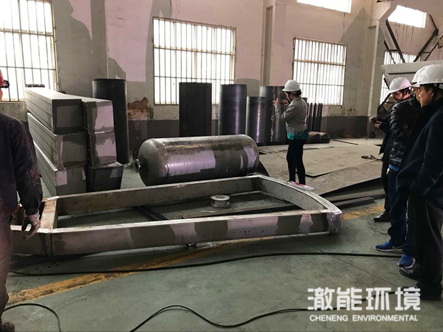 俄罗斯石化客户检验两台浅层气浮设备,并洽谈后面订购中的浅层气浮技术细节。