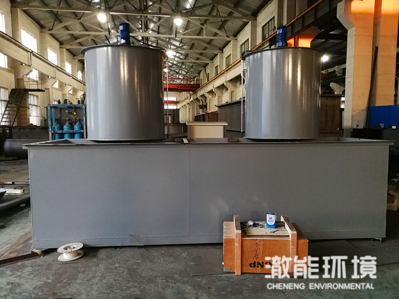 CJY高低桶加药装置主要用来快速溶解PAC、PAM、破乳剂、脱色剂等粉末状药剂,配置所需浓度的液态药剂,方便投加使用。 应用范围 主要用在气浮反应区前端,用来溶解粉末状药剂。 突出优势 该套装置结构简单,操作方便,经济实用。 工作原理 采用高低通罐结构,主要有溶药罐、储药罐、溶药搅拌机、操作平台和扶梯组成。标配不含加药泵(可根据客户需求选配各类加药泵)。溶药罐设搅拌机,药剂在这里按投加量浓度配置,配好的溶液流到储药罐储存,由加药泵投加。