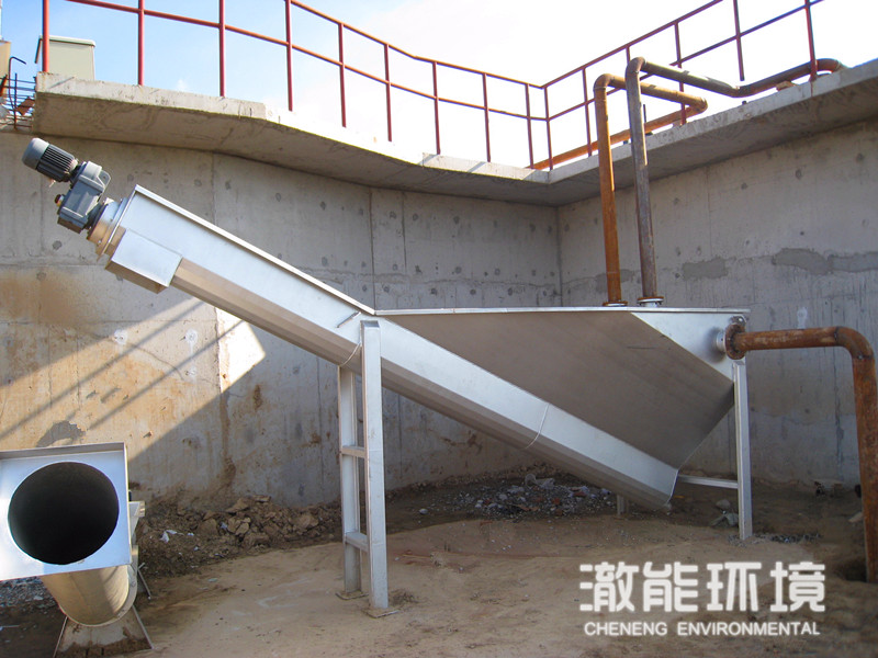 CGS螺旋式砂水分离器是沉砂池除砂系统的配套设备,其作用是将从沉砂池排出的砂水混合液进行砂水分离。 应用范围 用于将城市污水处理或工业废水处理中的沉砂池排出的砂水混合液进行砂水分离。 突出优势 1、分离效率可达96%~98%,可分离出粒径≥0.2mm 的颗粒; 2、采用无轴螺旋,无水中轴承,维护方便; 3、结构紧凑,重量轻; 4、新型传动装置,其关键产件--减速器为先进的轴装式,不用联轴器,安装对中方便; 5、衬条为快装式,便于更换; 6、螺旋轴向位置可调,便于调整其尾部和箱壁的安全间隙; 工作原理 CGS螺旋式砂水分离器工作时,砂水混合液从分离器一端顶部进入水箱,混合液中重度较大的如砂粒等将沉积于槽形底部,在螺旋的推动下,砂粒沿斜置的U型槽底提升,离开液面后继续推移一段距离,在砂粒充分脱水后经排砂口卸至砂桶,而与砂分离后的水则从溢流口排出并送往厂内进水池。